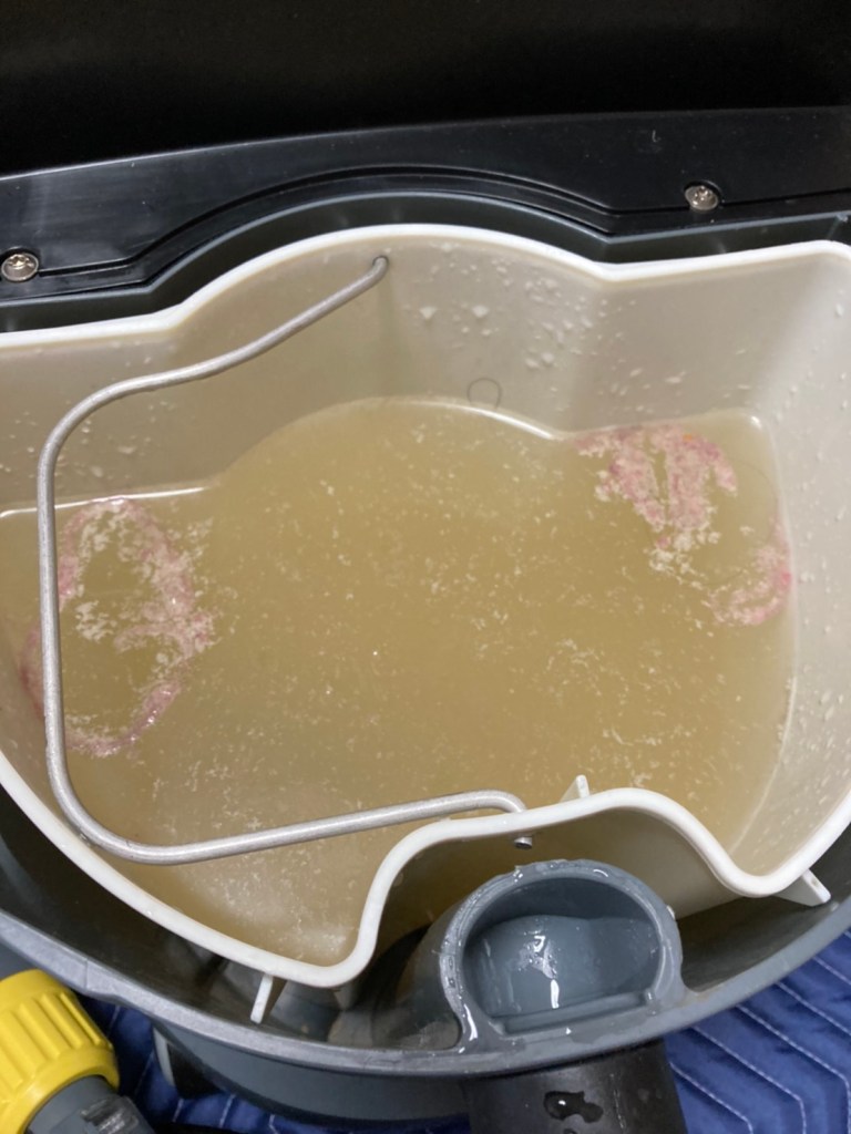 洗浄液とつけブラッシングし、スチームで汚れを浮かし、拭き上げました。