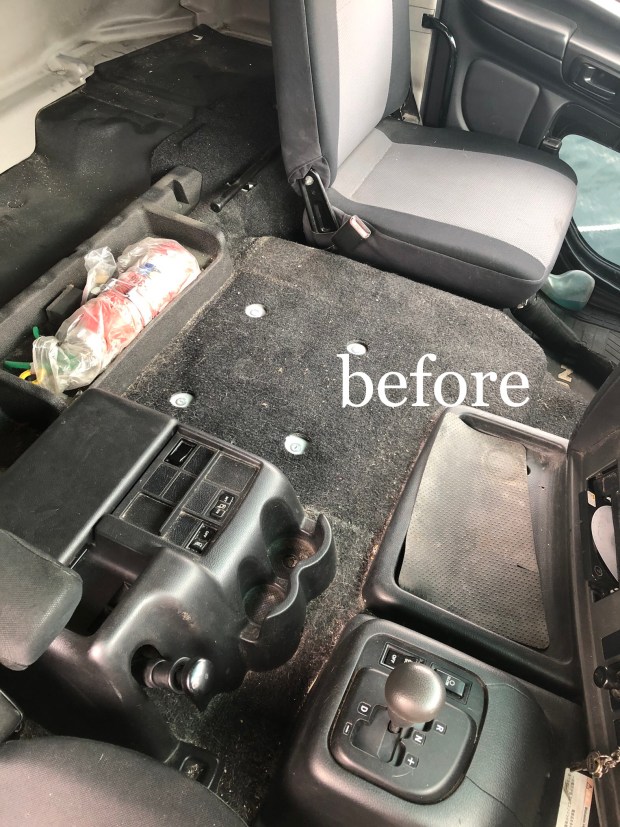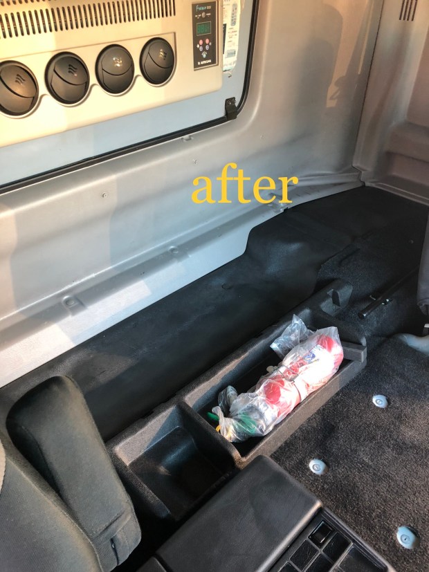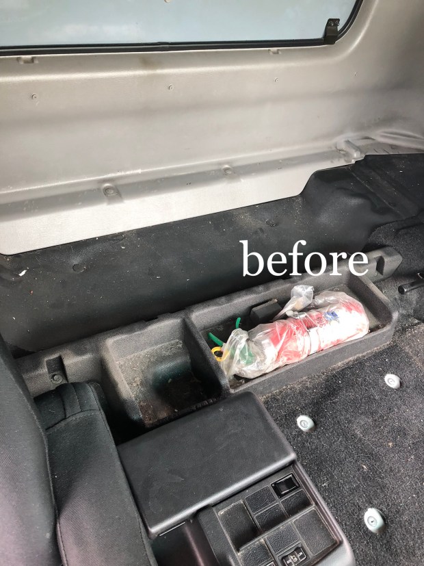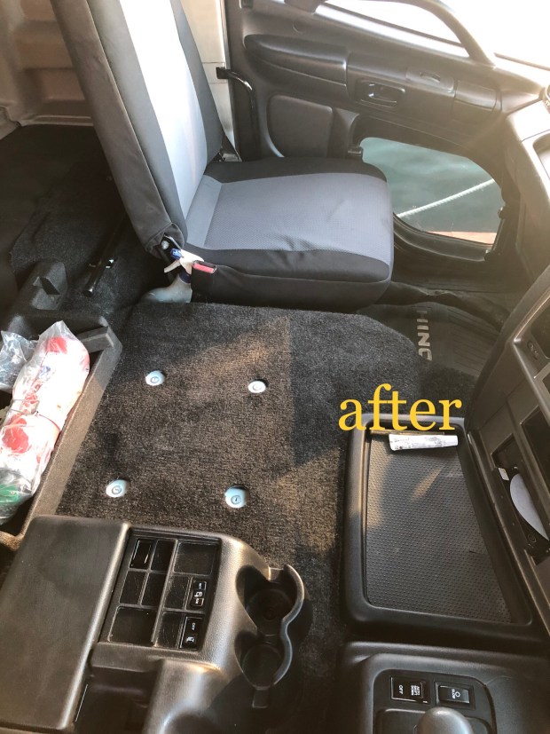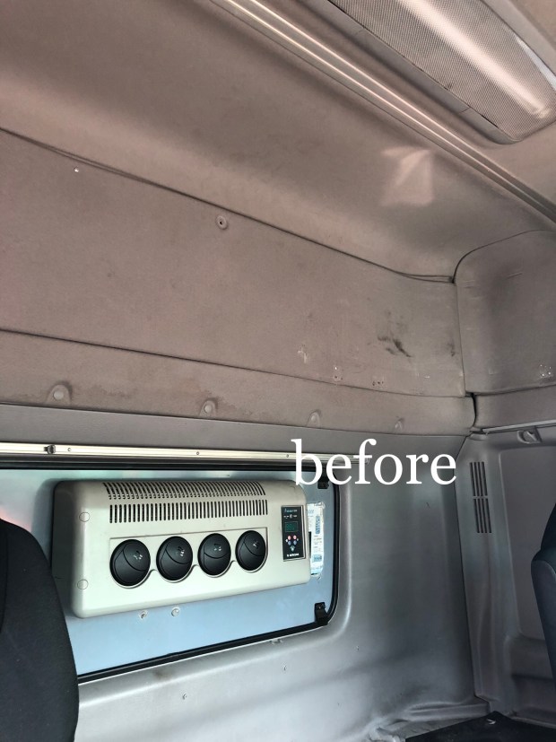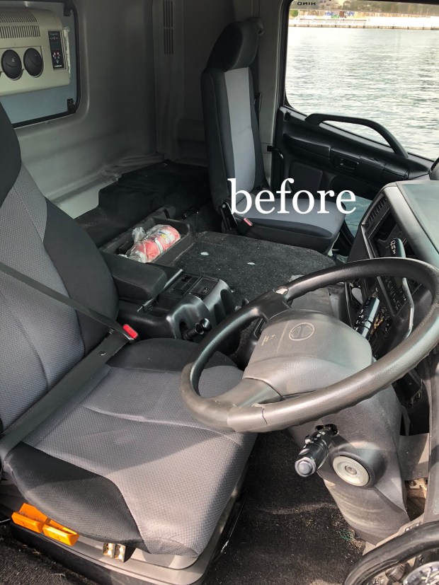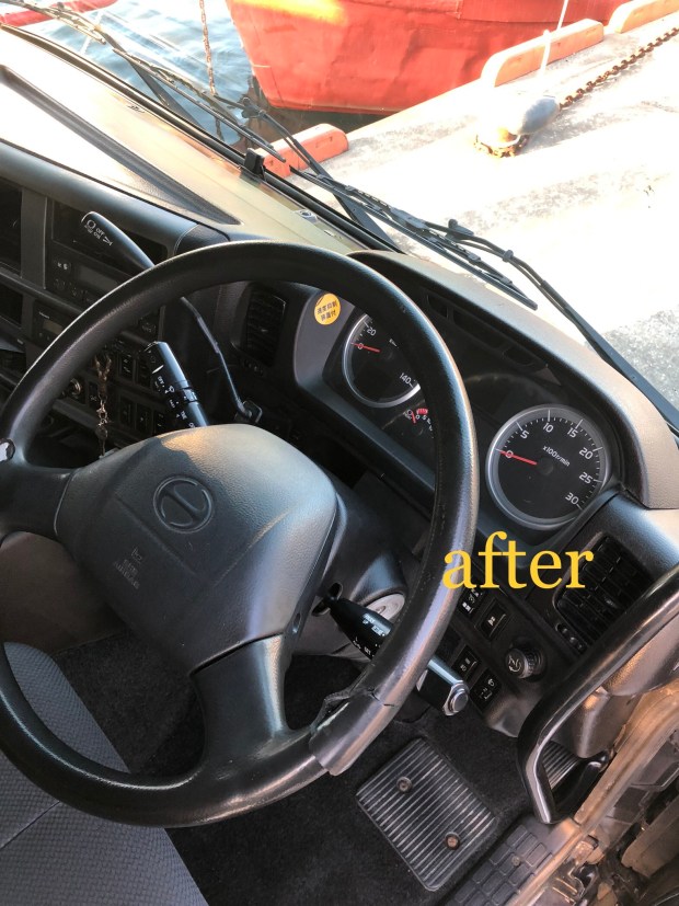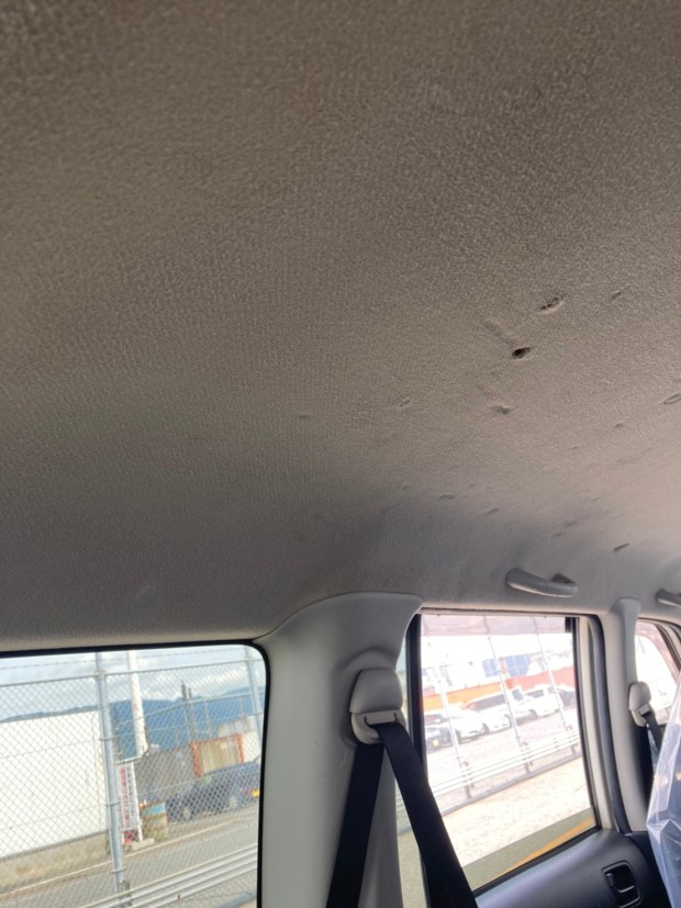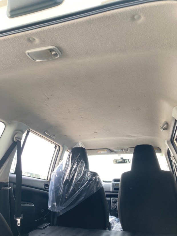 油汚れみたいな感じのが天張り全面にあり、現場系の車両だったのかなという印象でした。